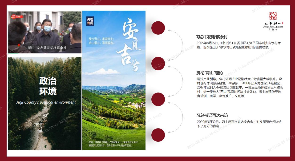 自2015年開業(yè)至今已10年,2005年8月15日,時任浙江省委書記的習近平總書記到浙江安吉余村考察,提出“綠水青山就是金山銀山”的理念,余村是兩山理論的發(fā)源地,呈現(xiàn)出生態(tài)經(jīng)濟和鄉(xiāng)村振興的壯美畫卷,讓人深刻感受到紅色基因如何賦能綠色發(fā)展,引領(lǐng)中國鄉(xiāng)村走向現(xiàn)代化的光輝前景,因此余村成為紅色旅游、黨建培訓的基地。
